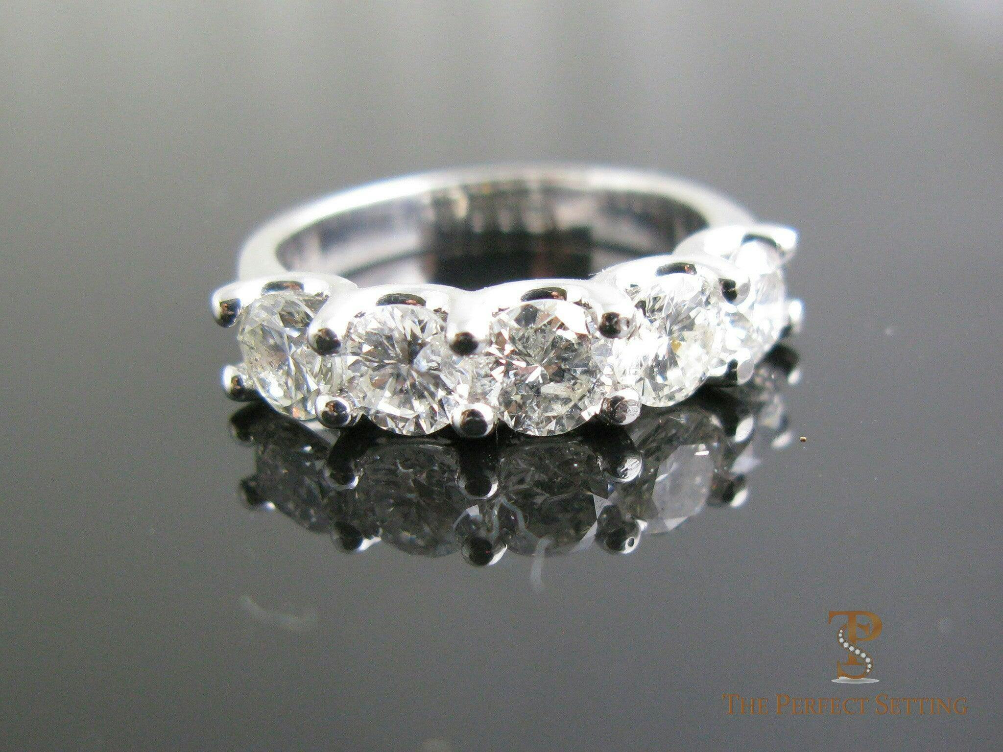 5 Stone Diamond Ring - U Shaped setting. Featured ring shown with 2 ctw (40 pts each) Can be made with other size stones in Platinum, White, Yellow or Rose Gold.