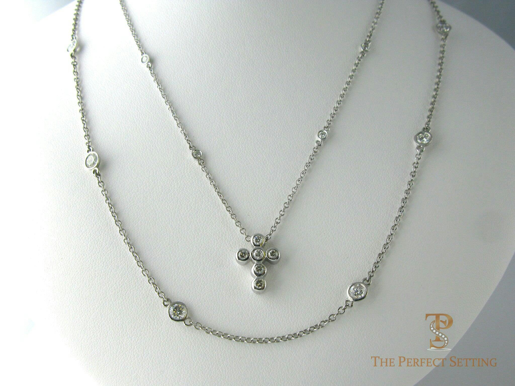 Diamond Cross in Platinum with Matching Diamond Chain. My client had a diamond cross necklace that needed some "pizazz". We added diamonds to her chain and made her a new diamond necklace in platinum to be worn together or separately.