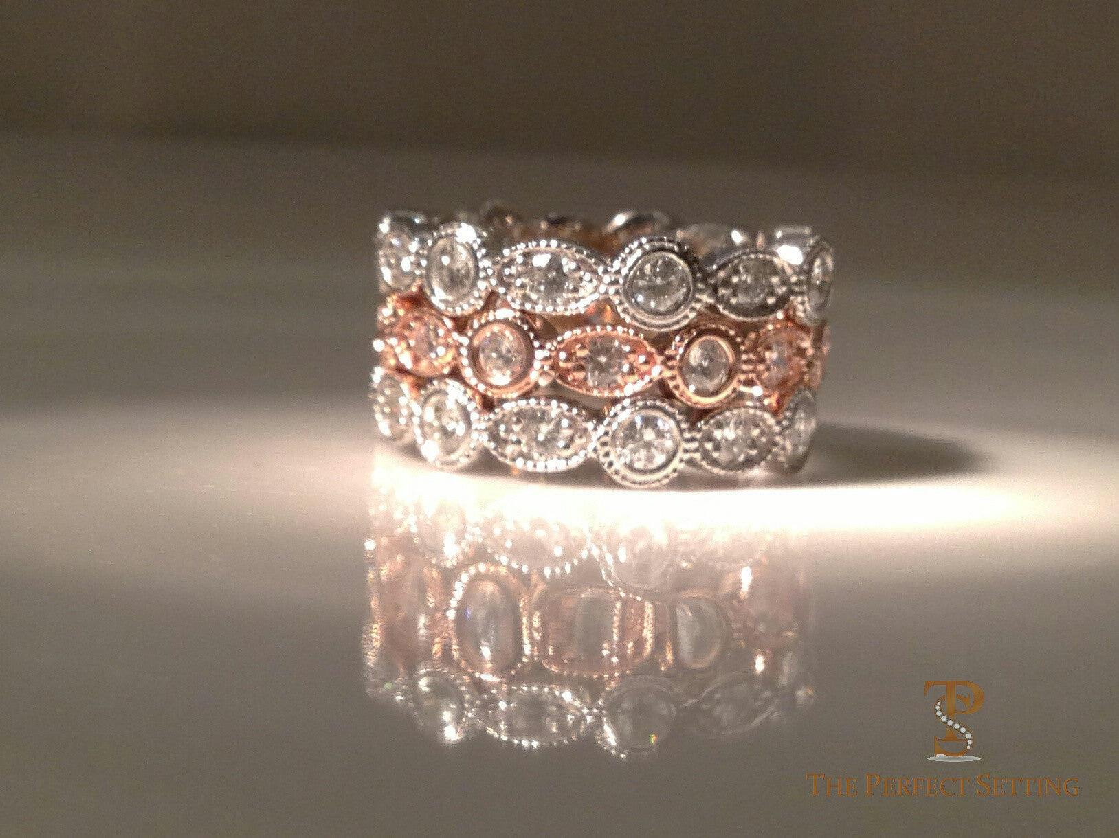 Love these stacking rings and wedding bands! Shown in 18K Rose Gold and Platinum. Can be cast in other metals.