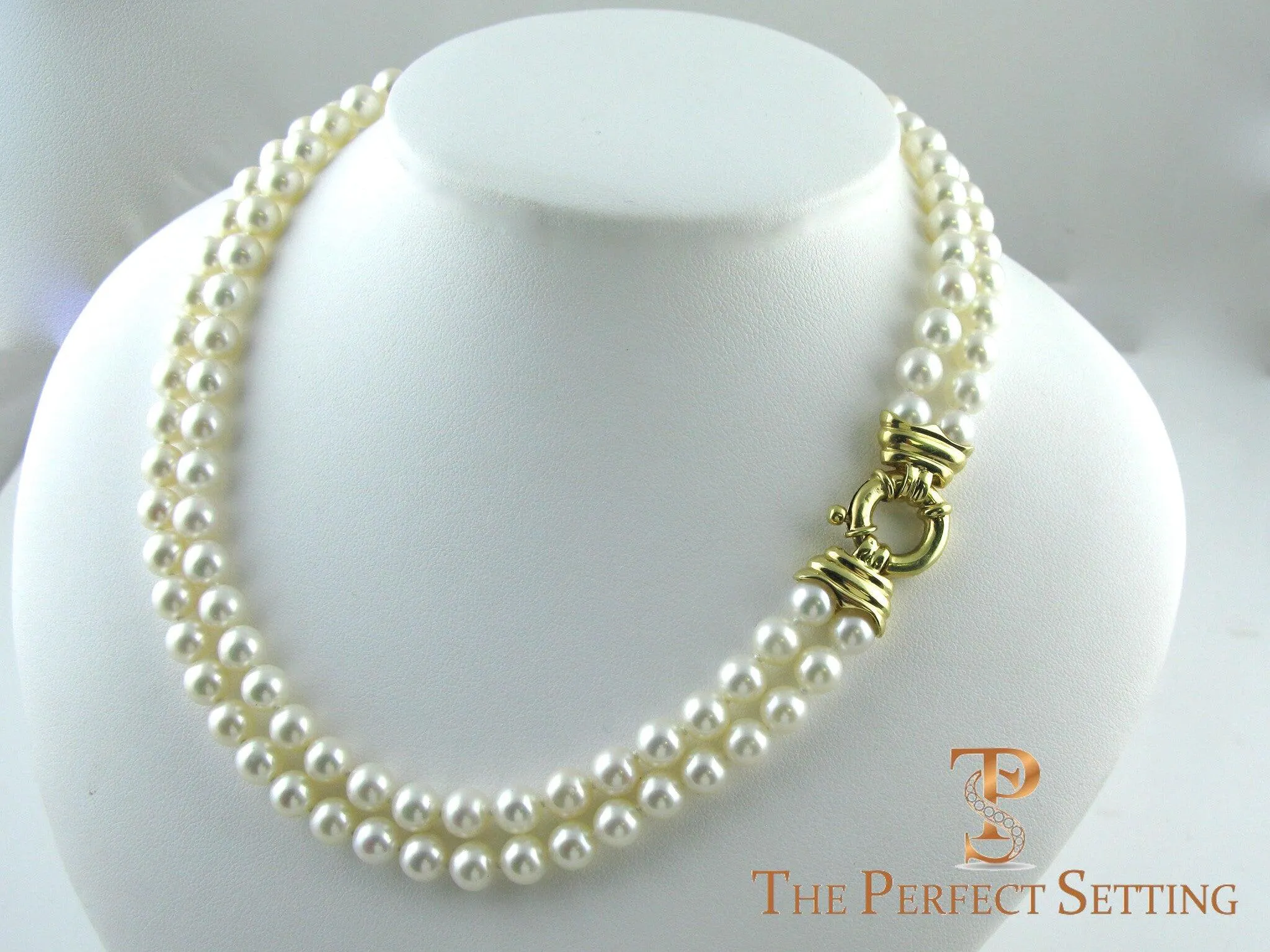 Double Strand Cultured Pearl Necklace Custom 18K Gold Clasp